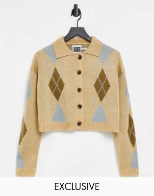 Reclaimed Vintage Inspired - Cardigan coupe carrée à col et motif losange neutre | Evesham-nj